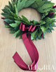 In Foto 1: Corona di Alloro con Lagurus mini pampas Bordeaux, Fiocco Elaborato Bordeaux con perlina a 2 code. Per avere tali nastri è necessario personalizzare la corona in fase d'acquisto, se non vorranno fornite queste informazioni la corona verrà decorata con fiocco semplice a 2 code lungo fino alle spalle.