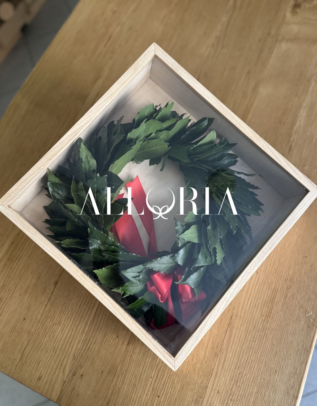 Una teca in legno elegante e naturale per conservare la tua Corona di alloro dopo la laurea.